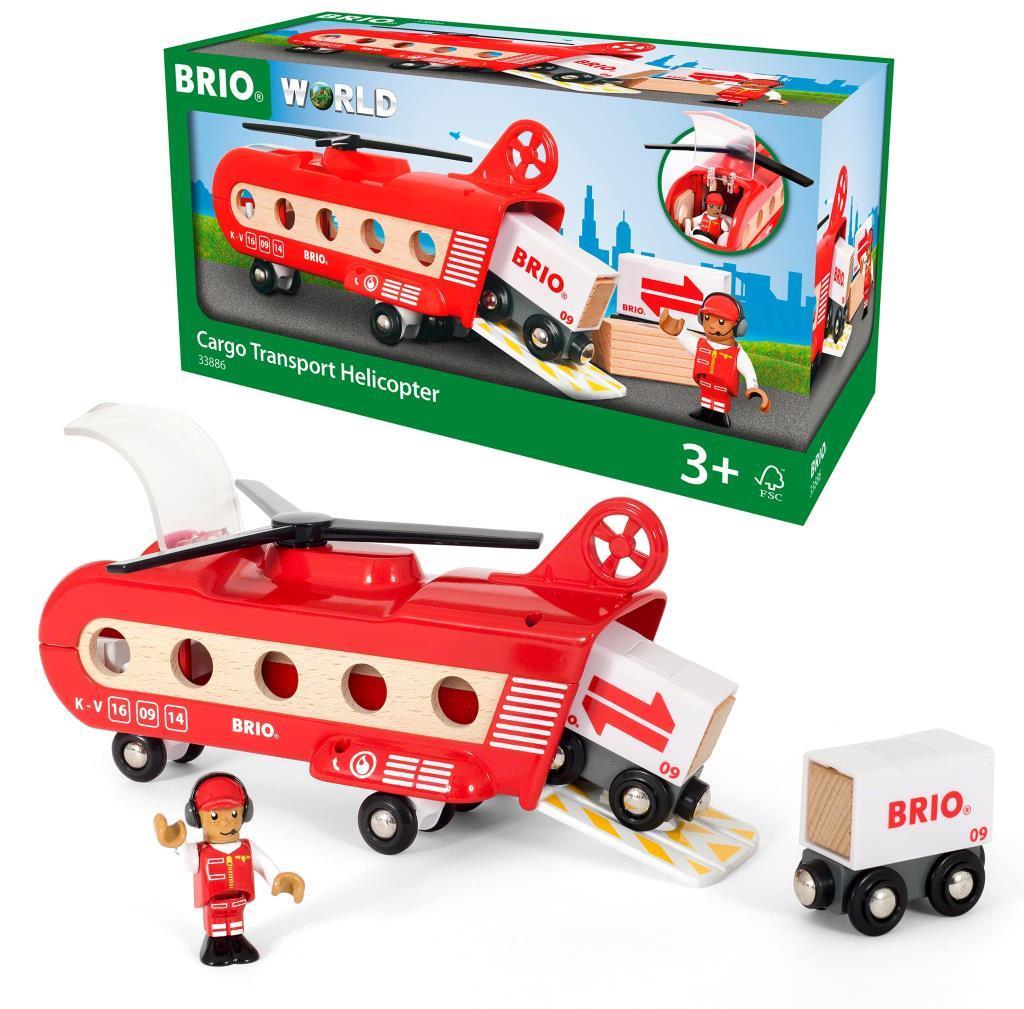 Uçmak için en havalı yol helikopter!Yeni Kargo Taşıma Helikopteri oyuncağındaki pilotun arkasında, kargo bölmesi ciddi bir ağırlık taşımaya hazır - iki tam yüklü vagon bulunur.Her şey yerinde olduğunda, BRIO helikopterinizin rotorunu döndürün, BRIO World'ünüzden yukarı çıkın ve yükselin.
