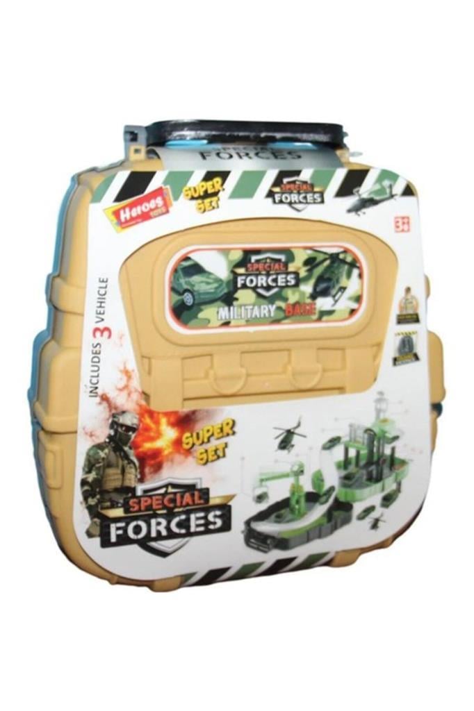 Heroes Toys Çantalı Asker Seti Arabalı ERN-2014 Kahve,Sırt Çantalı Taşınabilir Oyuncak Garaj Seti