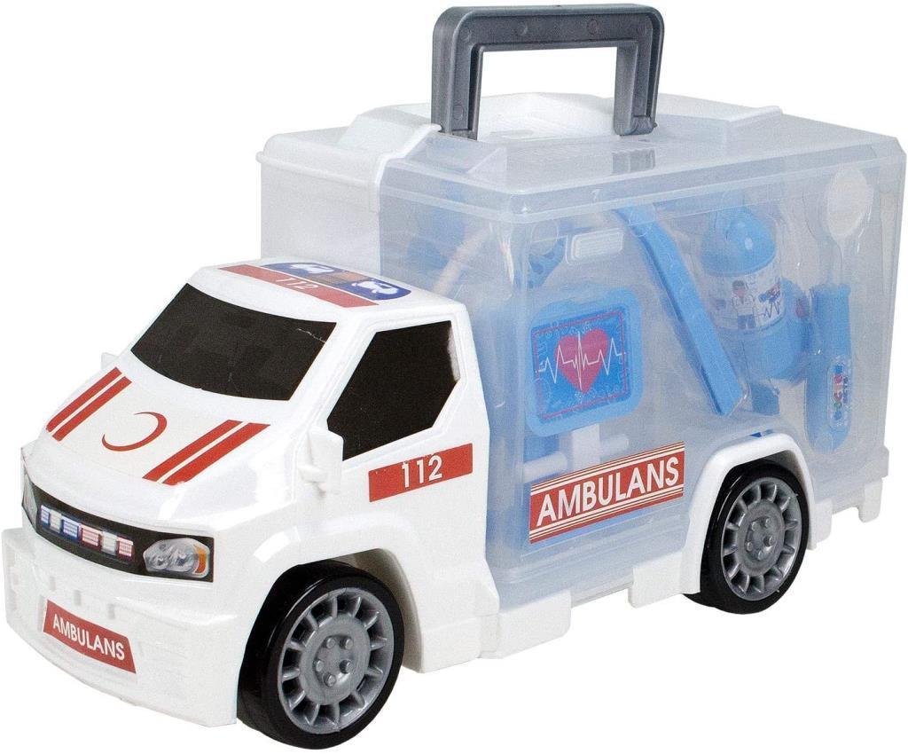 Sesli ve ışıklı ambulans şekilli çantalı ilk yardım seti ile çocuklar kendilerini gerçek bir kahraman gibi hissedecekler!