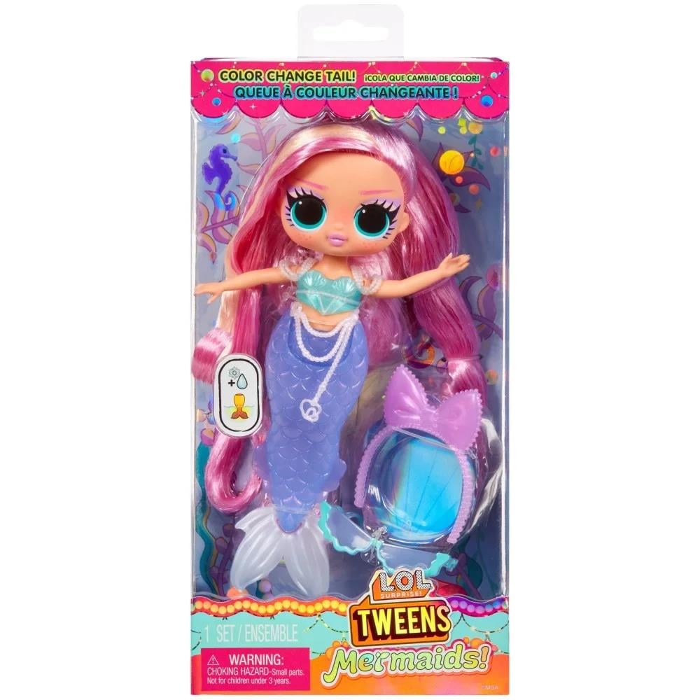 L.O.L. Surprise! Tweens Deniz Kızı Bebekleri ile suyun altında büyülü bir maceraya dalmaya hazır mısın? Birbirinden güzel kuyrukları ve rengarenk saçları ile sihri keşfet! Üstelik kuyruğunu soğuk suya daldırdığında kuyruğu renk değiştiriyor!16,5cm boyundaki bebeğinle kuyruğu salla ve yüzmeye başla!Her pakette 1 adet Tweens bebeği ve kendine özel aksesuarları bulunur. Cleo Cove, Lana Marine, Lola Waves şeklinde üç farklı seçenek mevcuttur.